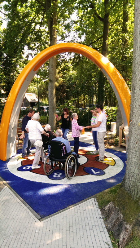 Senior home, Hilverzorg, The Netherlands shows how elderly with (and without) dementia are getting outdoors more frequently and enjoy dancing and moving about together under their Sona. Music, sounds, and instructions trigger the passive elderly (passiveness being part of the dementia condition) to become physically revitalized and mentally alert.